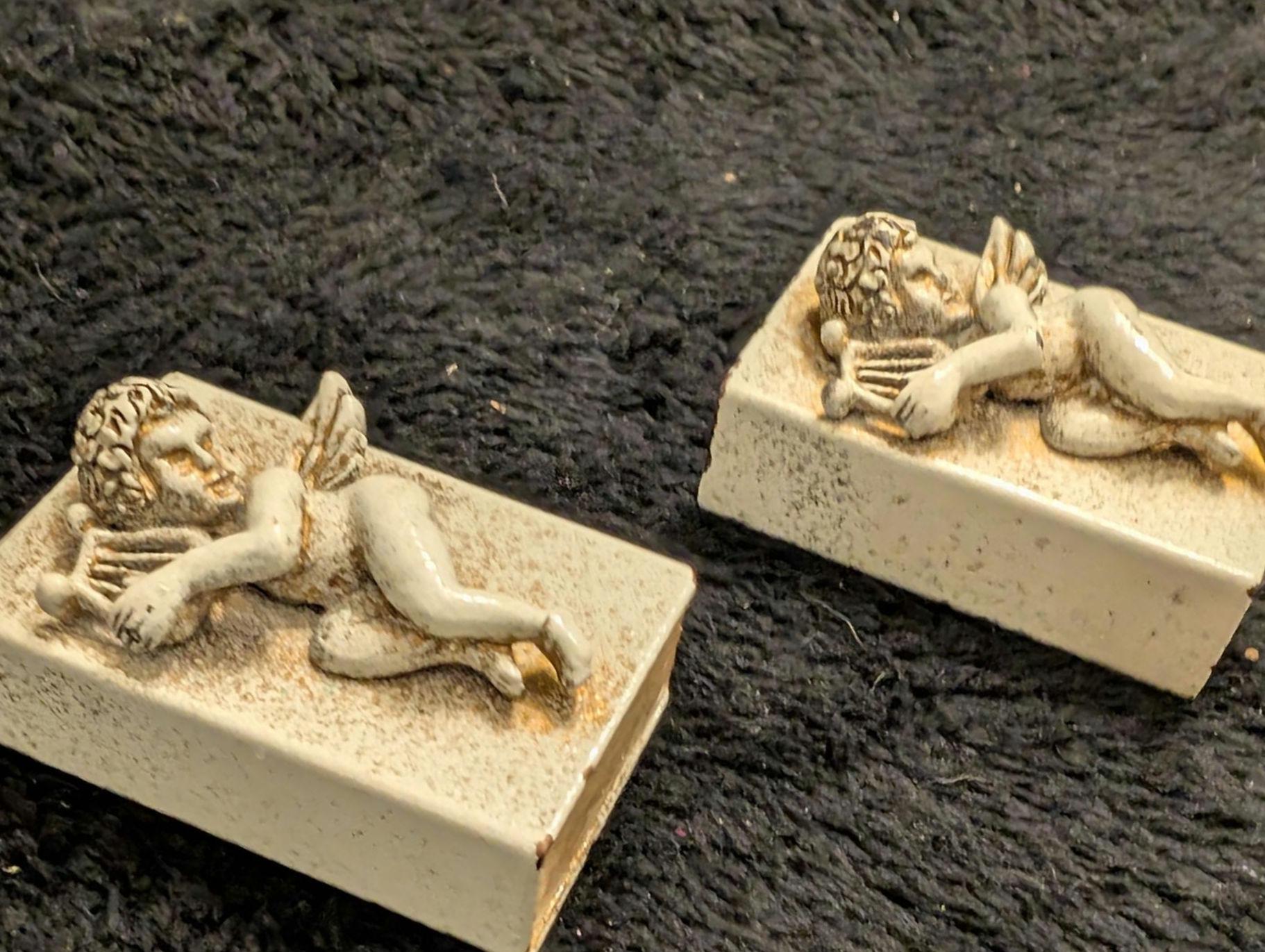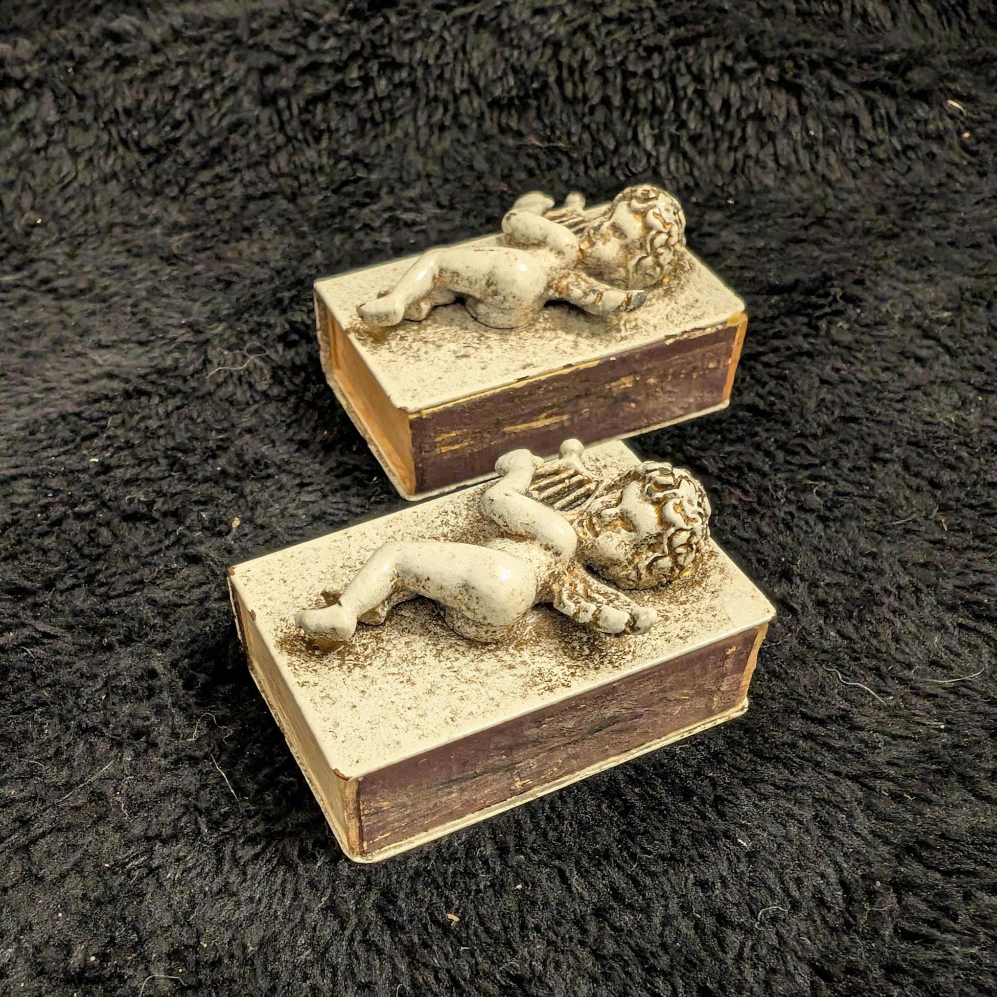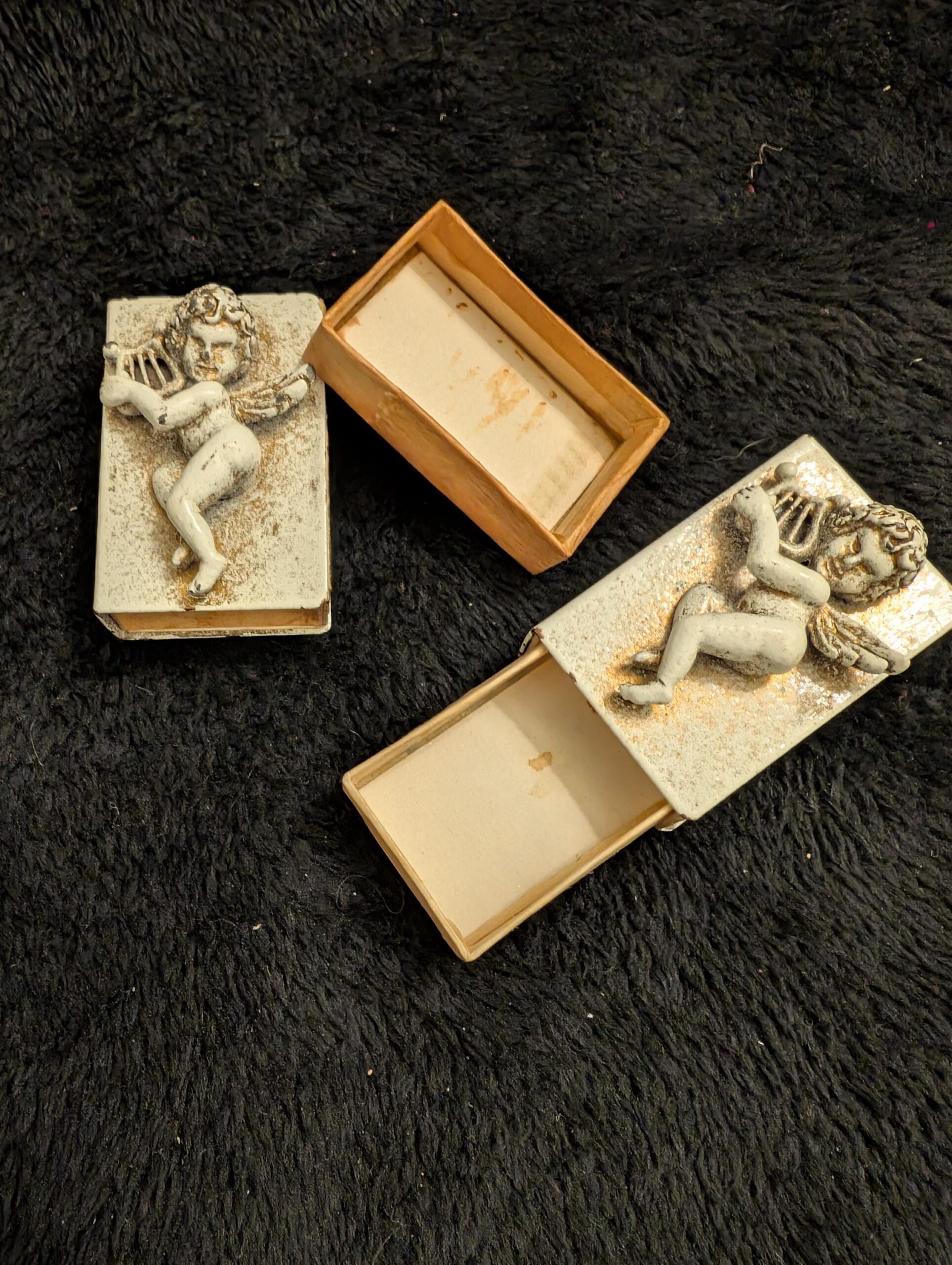This matchbox is more than just a functional item—it's a quirky collectible with a touch of whimsy. Whether displayed as part of a vintage collection or added to your home decor, the cherub design will stand out as a charming, nostalgic piece that’s sure to spark conversation.