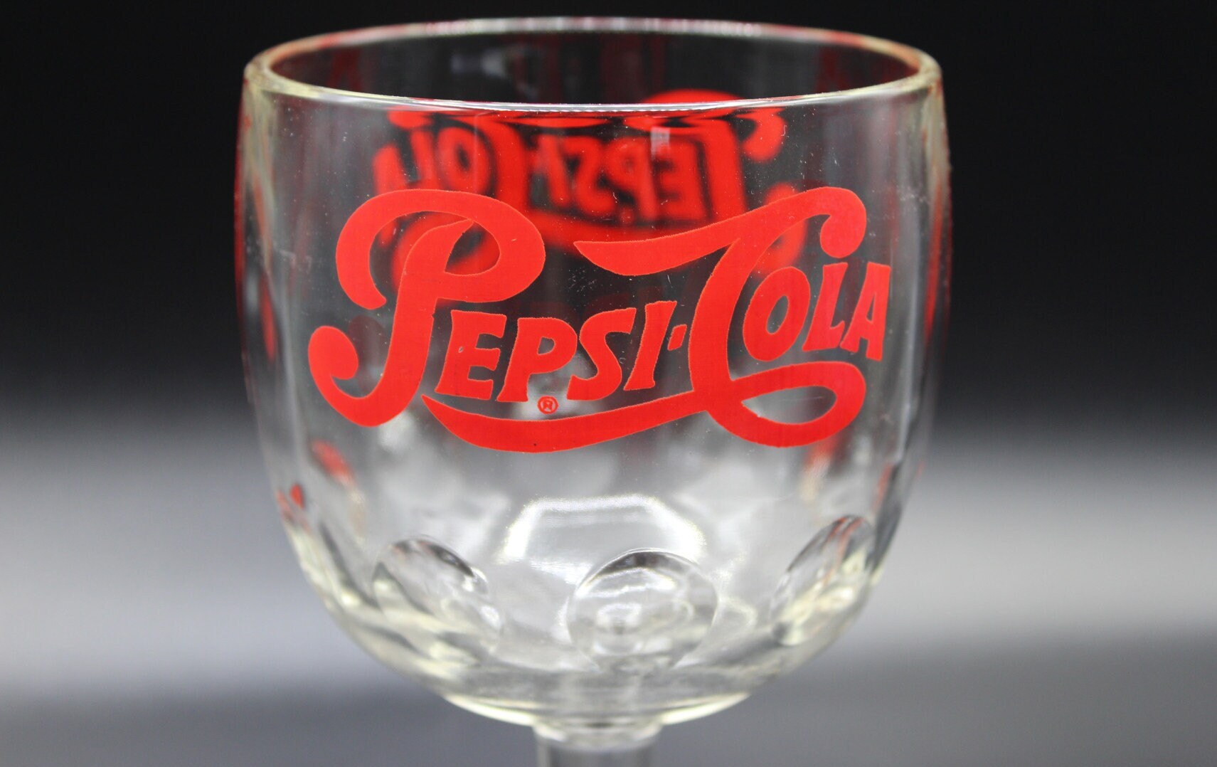 Add a touch of nostalgia to your collection with this Vintage 1970s Pepsi Thumbprint Goblet. This unique glassware features the iconic red Pepsi-Cola logo, emblazoned on a beautifully crafted thumbprint design. Perfect for soda enthusiasts or vintage item collectors, this goblet makes a striking addition to any home bar, kitchen, or display cabinet. Crafted from durable glass, it's both functional and stylish, ideal for serving your favorite beverages or for use as a decorative piece. Don't miss the chance to own a piece of Pepsi history with this charming vintage goblet from the 1970s. Buy now and celebrate the classic American brand in style.