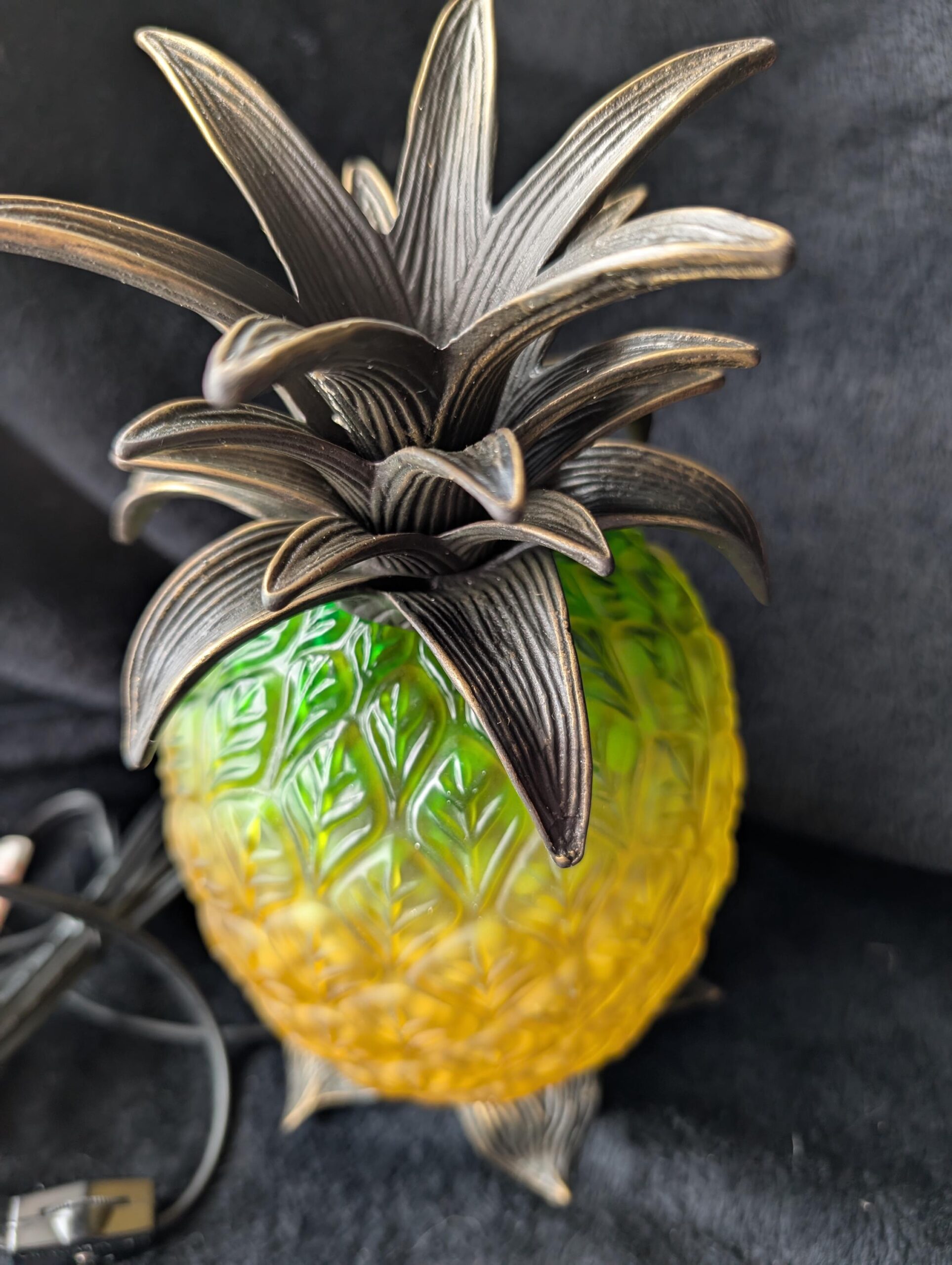 Design: Pineapple-shaped lamp with rich yellow and green tones