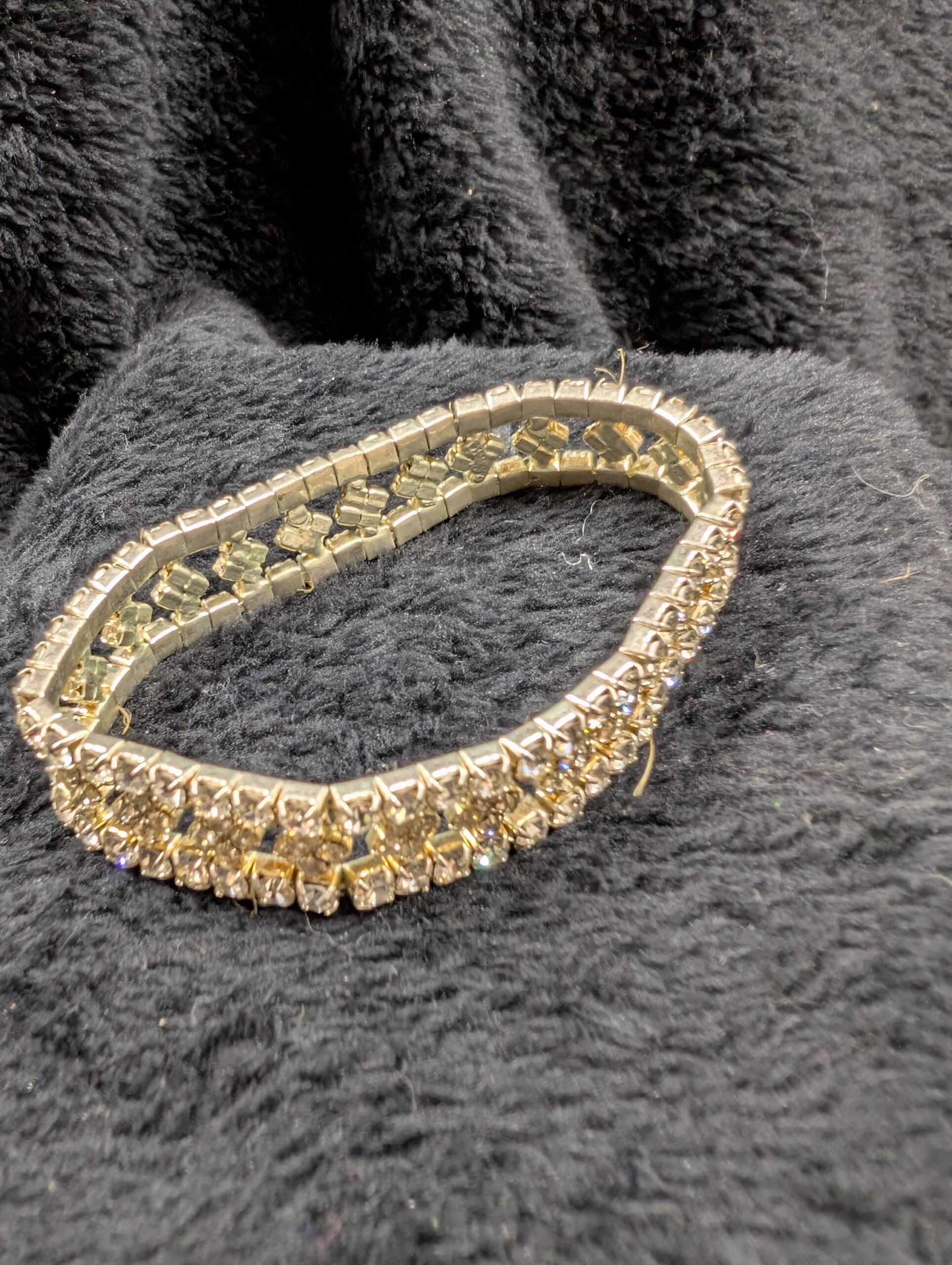 Vintage Rhinestone Stretch Bracelet – Dripping in old Hollywood glamour, this bracelet features multiple rows of sparkling rhinestones set in a classic stretch design, making it both comfortable and eye-catching. A true statement piece for vintage lovers.